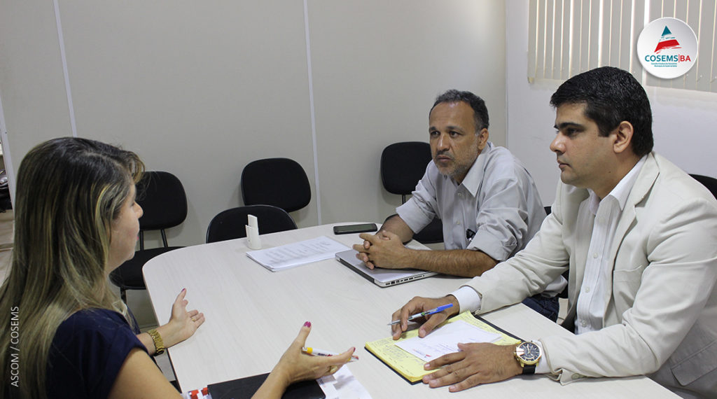 Os assessores jurídicos do Conselho Estadual dos Secretários Municipais de Saúde da Bahia (COSEMS/BA), Isadora Maia e Clécio Lima, se reuniram na manhã desta quarta-feira (11/10) na sala de reunião do Conselho com o secretário de saúde de Livramento de Nossa Senhora e presidente do Conselho Interfederativo da FESF (Fundação Estatal de Saúde da Família), Gerardo Azevedo, para prestar esclarecimentos técnicos quanto às demandas apresentadas na última reunião do Conselho Interfederativo, no dia 12 de setembro.