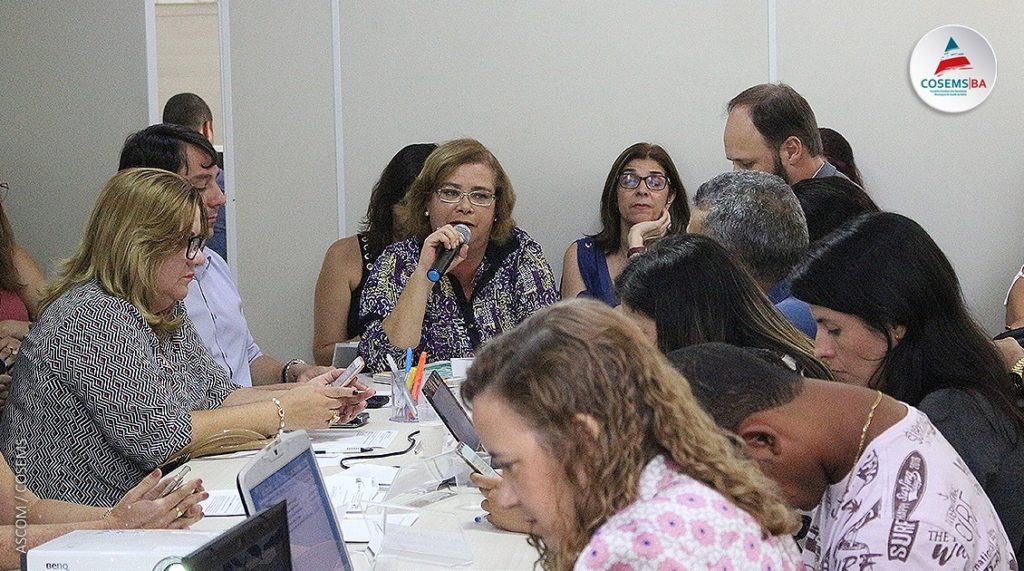 O auditório do Conselho Estadual dos Secretários Municipais de Saúde da Bahia (COSEMS/BA) foi o local onde o Grupo Condutor de Rede realizou, na manhã desta quarta-feira (13/11), a sétima reunião de 2018. No encontro, estiveram representando o COSEMS/BA a presidente, Stela Souza, a diretora de Finanças titular do COSEMS, Jacqueline Bomfim, a sua suplente, Raquel Ferraz, a diretora de Articulação Regionalização, Denise Mascarenhas, o diretor executivo, Rodrigo Kuada do COSEMS, os membros da Comissão Intergestor Bipartite (CIB), Luis Galvão (secretário de saúde de Salvador) e Odilon Rocha (secretário de saúde de Cachoeira), os secretários municipais de saúde de Ilhéus, Geraldo Magela, de Caem, Sandra Castro, Teixeira de Freitas, Max Almeida, Ipirá, Rosania Rabelo, e a secretária executiva do COSEMS/BA, Luíza Campelo.